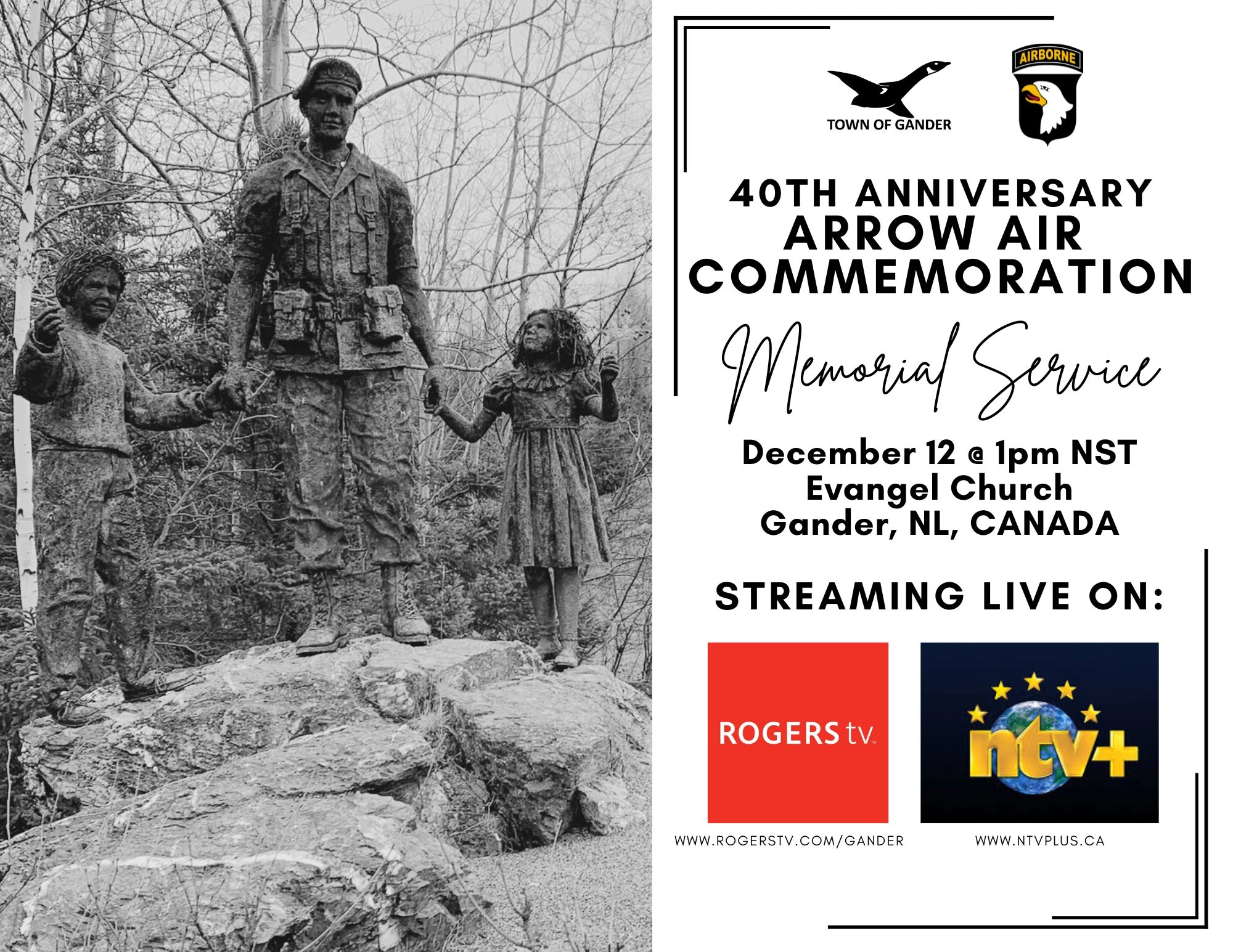 The Town Council of Gander will mark the 40th Anniversary of the Arrow Air Disaster on December 11th and 12th, 2025.